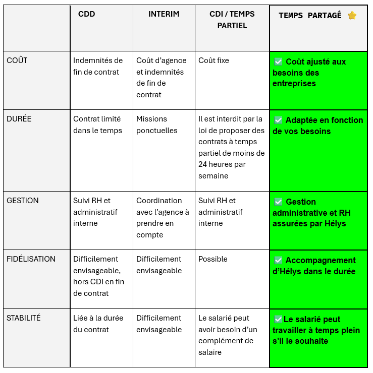 En bref, le temps partagé offre à la fois agilité et sécurité, dans une logique de mutualisation des savoir-faire individuels pour faire grandir collectivement employeurs et employés.