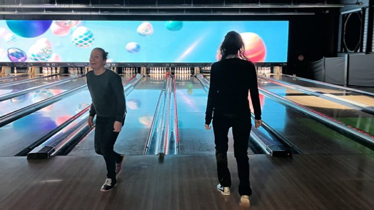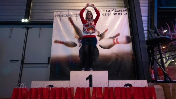 Entre spares, strikes et gouttières, les pistes étaient en feu et la compétition forte en émotion. Nous avons tout de même une équipe gagnante et tenons à la féliciter ! Alors bravo à Anne-Charlotte, Frédérique, David et Anne-Françoise. Une mention spéciale pour Charlotte qui a obtenu le plus grand score de la soirée avec 133 points. Mais ce n’est pas tout ! Kristell était aussi à l’honneur car il lui revient le prix du « Plus beau pull moche de Noël ».